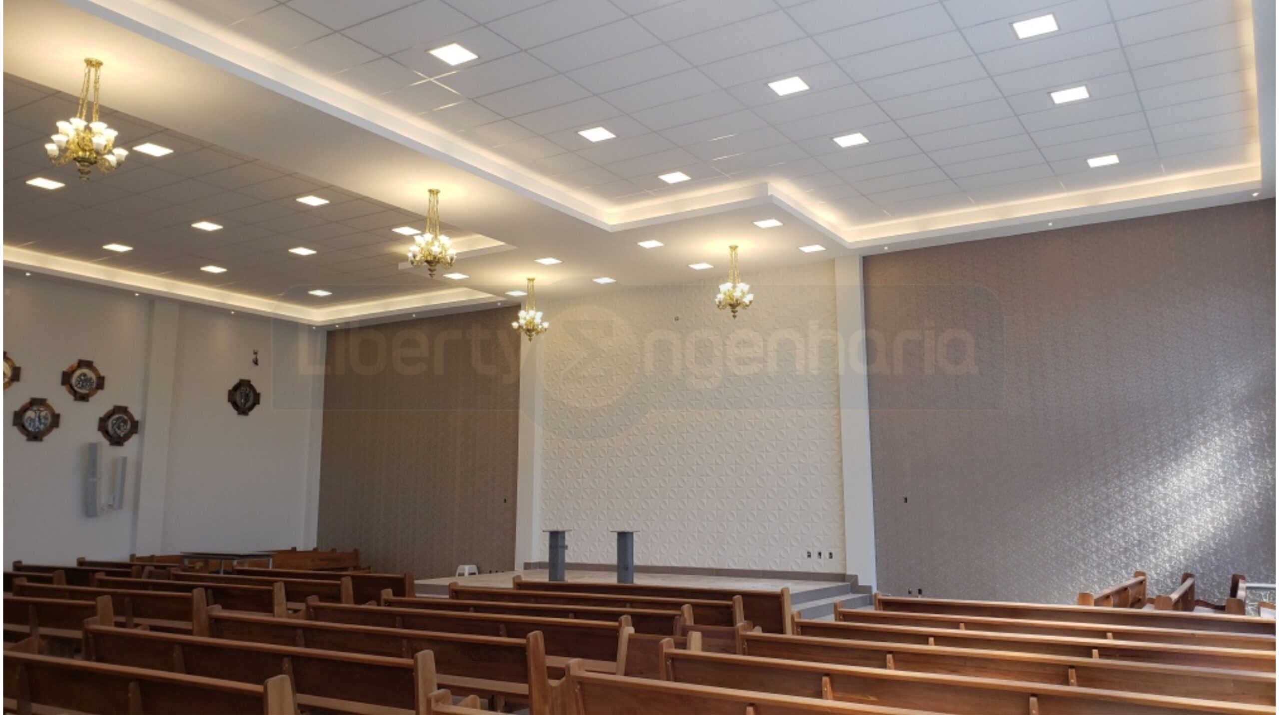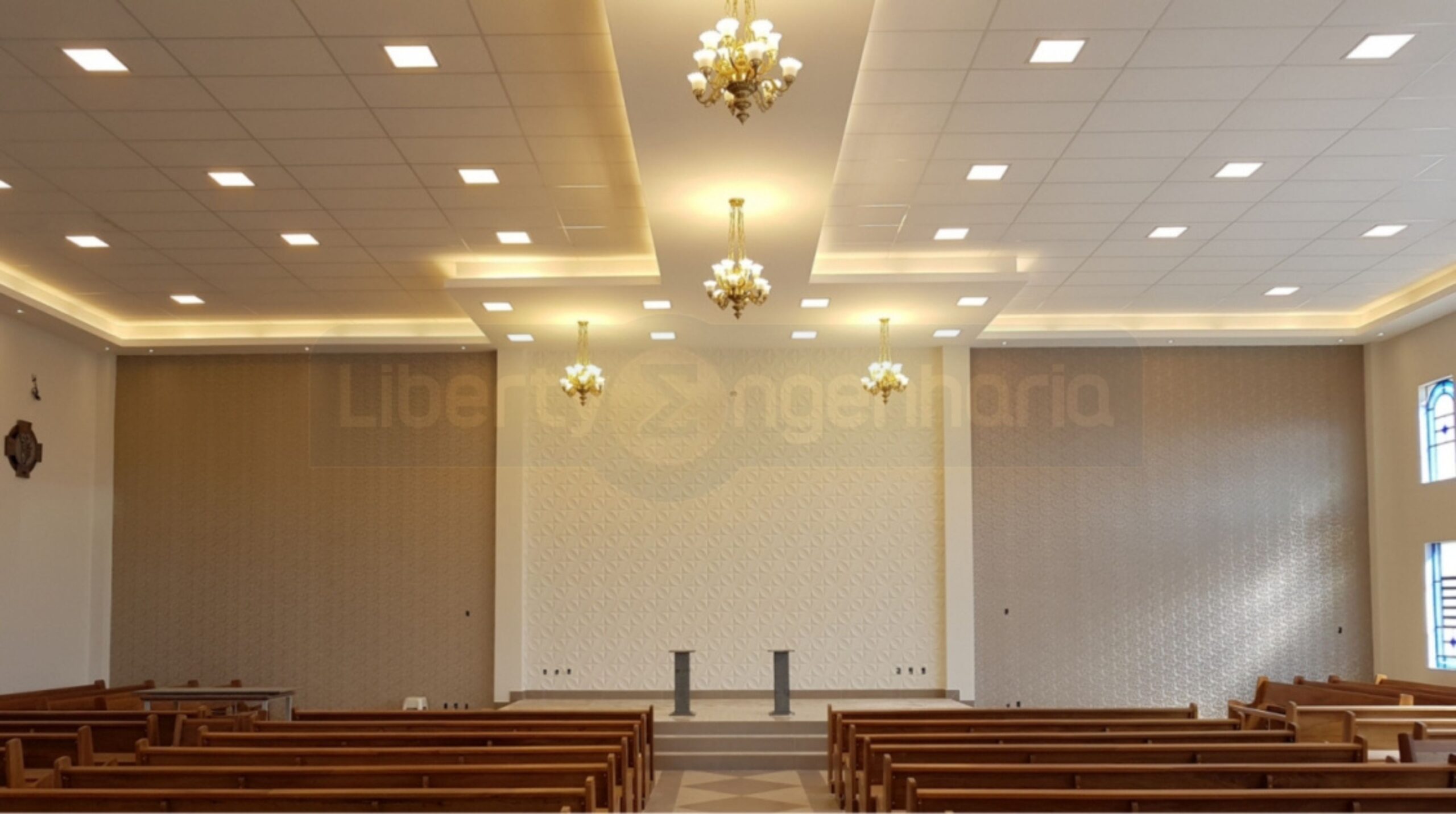 O forro fiber clean é a solução mais utilizada nas igrejas, isto se deve porque é um produto de alta eficiência, excelente acabamento, ótimo relação custo beneficio.